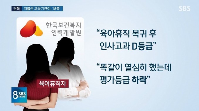 ▲ 7일 보건복지부 산하 한 공공기관이 육아휴직을 한 직원들에게 비정규직 전환같은 보복성 인사조치가 단행돼 논란이 일고 있다.  [SBS 뉴스8 방송화면 캡쳐]