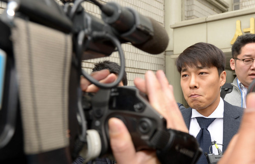 ▲ 전 쇼트트랙 국가대표 김동성이 지난 2017년 3월 31일 오전 서울 서초구 서울중앙지방법원에서 열린 '영재센터 지원 의혹 관련' 공판에 증인으로 출석 후 취재진의 질문을 받으며 법원을 나서고 있다. [뉴시스]