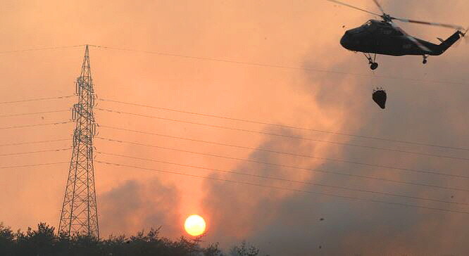 ▲ 울산 온양 산불이 발생한 지 닷새째인 26일 오후 지자체 헬기가 진화작업을 하고 있는 모습 [뉴시스]