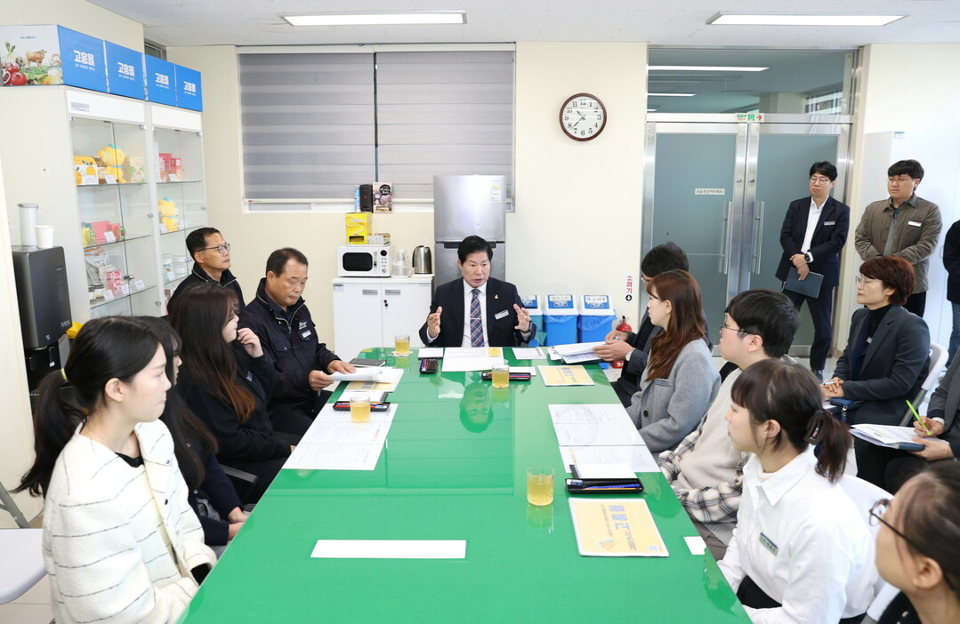 | ▲ 지난 21일 공영민 전남 고흥군수가 고흥몰의 운영전략을 정립하고, 온라인 쇼핑몰의 성장 가능성을 극대화하는 방안을 논의하고 있다. [고흥군 제공] |
