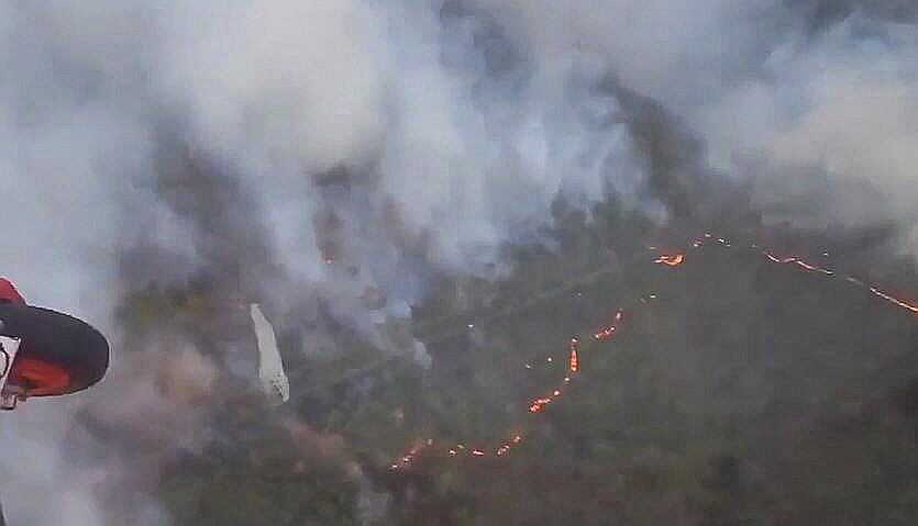 | ▲ 울산 온양읍 운화리 972-1 일원 야산에서 발생한 화재 현장 항공 촬영 모습 [울산소방본부 제공] |