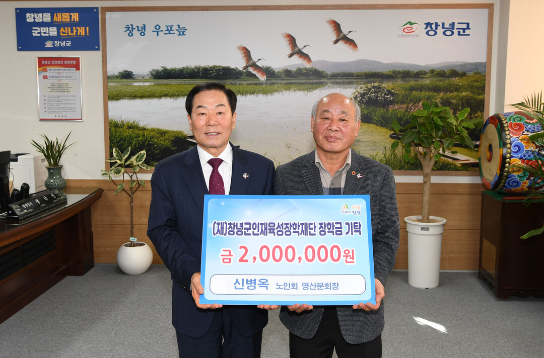 신병옥 대한노인회 창녕군지회 영산분회장(신제2구 이장)은 12일 창녕군에 장학기금 200만 원을 기탁했다.