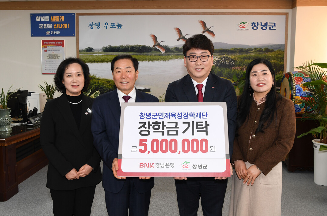 BNK경남은행 창녕지점(지점장 서철환)은 11일 창녕군인재육성장학재단(이사장 성낙인 군수)에 장학기금 500만 원을 기탁했다.
