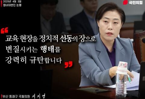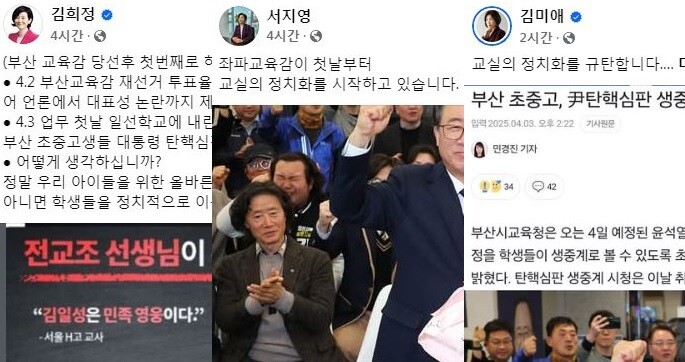 이와 관련, 김희정(연제구)·서지영(동래구)·김미애(해운대구을) 의원은 잇달아 SNS를 통해 김석준 교육감의 이날 지시 내용을 공유하며 방침 철회를 촉구했다.