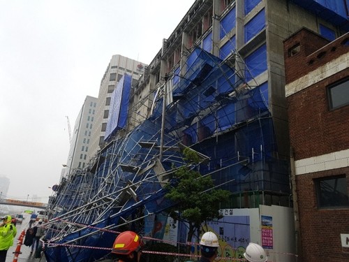 부산 중구 한 공사장 외벽에 설치된 20여m 높이의 안전 펜스가 무너지며 도로를 덮쳤다. 이 사고로 도로 갓길에 정차해 있던 관광버스 천장이 안전펜스에 맞아 파손됐고, 도로 일부가 통제됐다.