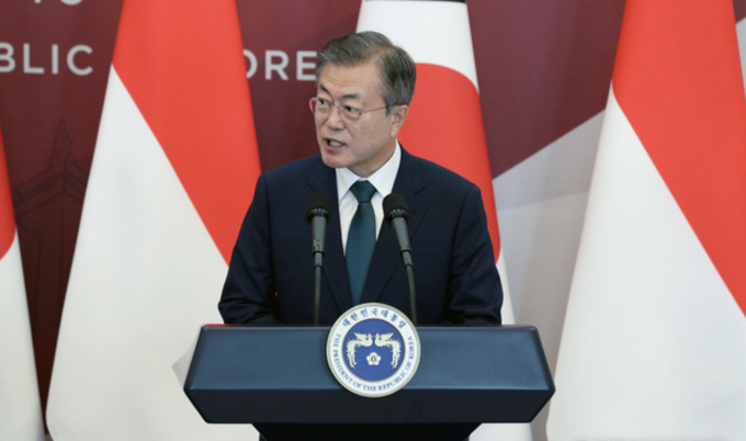 문재인 대통령은 10일 “한국과 인도네시아 양국은 올해 상반기 98억달러인 교역액을 2022년까지 300억달러로 늘려간다는 합의를 다시 확인하고 이를 실현하기 위해 더욱 노력하기로 했다”고 말했다.