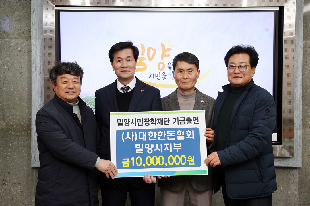 한돈협회 밀양시지부는 이날 밀양시민장학재단에 지역인재 육성을 위한 장학기금으로 1000만 원을 기탁했다. 지부는 지난 2010년부터 15년간 총 3500만 원의 장학기금을 꾸준히 기탁해 왔다.