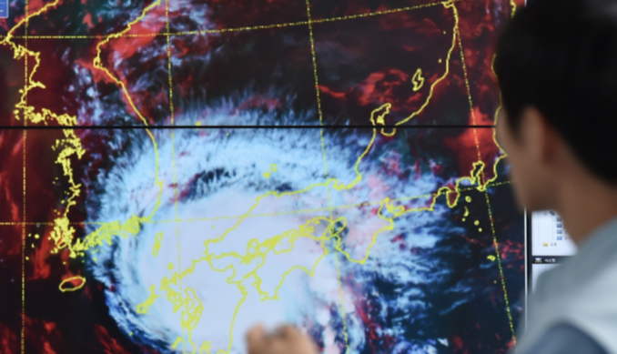▲ 제8호 태풍 프란시스코가 한반도를 향해 북상하자 6일 오전 경기도 수원시 권선구 수도권 기상청 직원들이 태풍의 이동 경로를 예의주시하고 있다. [뉴시스]