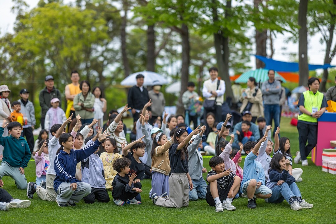 ▲ 순천만국가정원 개울길광장에서 지난 5일 어린이날 특별 프로그램에 아이들이 참여하고 있다. [순천시 제공]