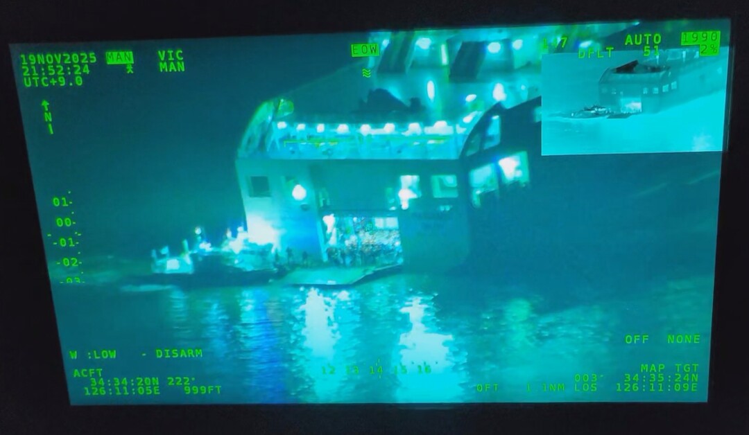 | ▲ 19일 퀸제누비아 2호에 탑승한 승객들이 해경 경비함에 구조되고 있다. [목포해경 제공] |