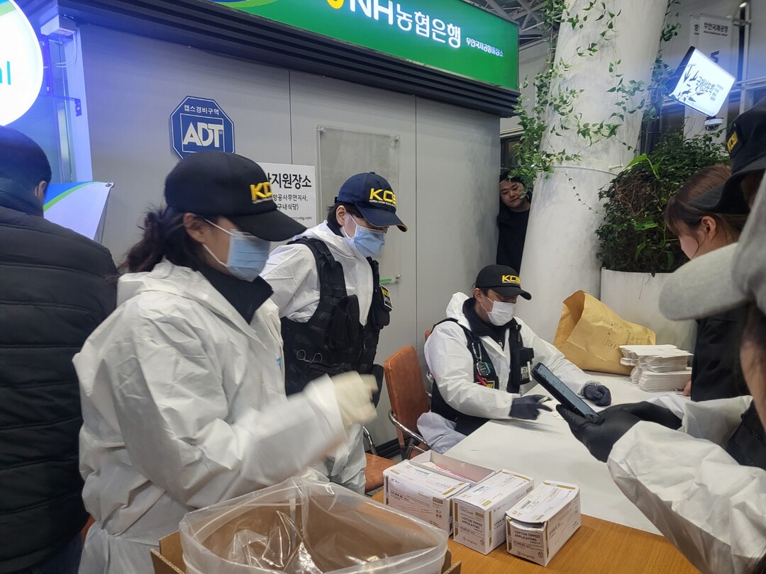 ▲ 29일 경찰이 무안국제공항 탑승 수속 인근 대합실에서 제주항공 여객기 충돌 사고 유가족의 DNA 채취에 나서고 있다. [강성명 기자]