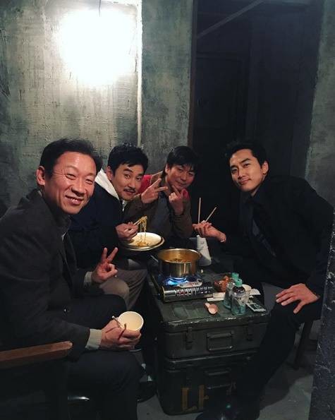 공개된 사진 속에는 정석용을 비롯해 송승헌, 허재호, 이철민이 OCN 드라마 '블랙' 촬영 도중 함께 라면을 먹고 있는 모습이 담겼다. 특히 이들의 화기애애한 모습이 훈훈함을 자아낸다.