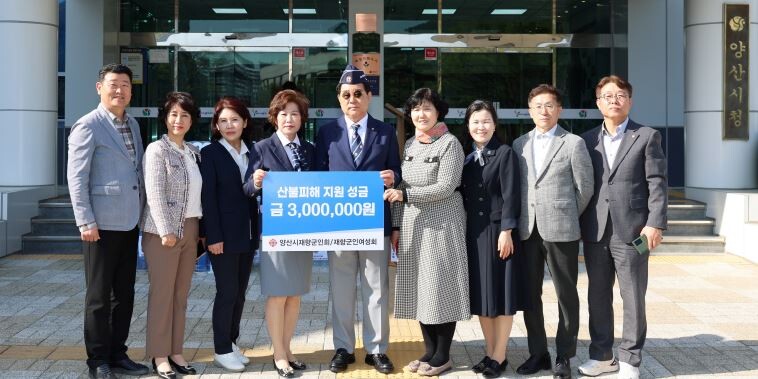 양산시재향군인회(회장 이상환)·재향군인여성회(회장 전정애)는 8일 영남지역 산불로 피해를 입은 지역주민을 위해 써달라며 시청에 성금 300만 원을 기탁했다.