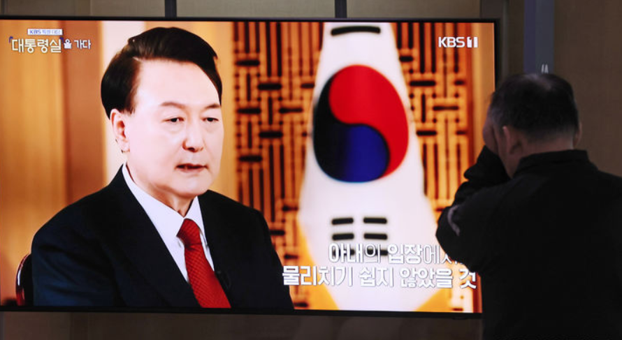 | ▲ 7일 밤 서울 중구 서울역 대합실에서 한 시민이 윤석열 대통령의 KBS 신년 대담 방송을 시청하고 있다. [뉴시스] |