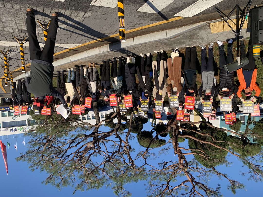 | ▲ 진천군청앞에서 단체행동에 나선 풍림 아이원 트리니움 입주예정자들. [입주예정자단체 제공] |