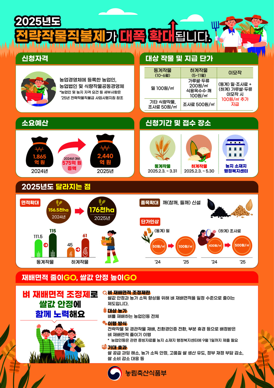 전략작물직불제는 쌀 수급안정과 논 이용률 제고를 위해 논에 전략작물을 재배하는 농업인 등에게 직불금을 지원하는 제도다.