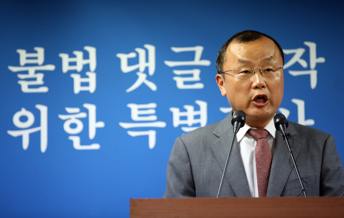 수사하고 있는 허익범 특별검사팀의 박상융 특검보가 17일 오후 서울 서초구 특검 브리핑룸에서 브리핑을