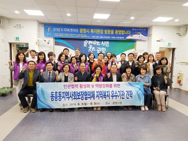 한편 광명시는 2016년부터 2018년까지 연속으로 보건복지부 지역복지평가에서 우수한 성과를 거둬 타 지자체에서 벤치마킹이 쇄도하고 있다. 지난 5월 24일에는 경기도 연천군 전곡읍과, 가평군 상면에서 다녀갔으며 오는 7월중에는 구리시 협의체가 방문할 예정이다.