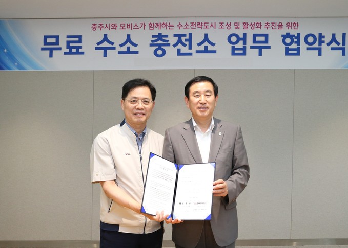 이날 협약에 따라 수소전기차를 보유한 충주시민은 올해 연말까지 현대모비스 방문자 예약시스템을 통해 현대모비스 충주공장 내 수소충전소 사전 예약 후 무료 충전 서비스를 이용할 수 있다.