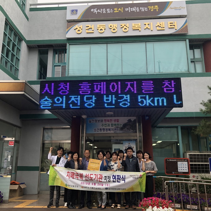 경주시 보건소 치매안심센터는 성건동행정복지센터를 제5호 ‘치매극복 선도기관’으로 지정하고 26일 현판식을 개최했다.