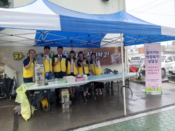 협의체 지역사회복지분과는 분과위원 13명과 함께 고성 장날을 맞아 고성파머스마켓 앞에서 무료 차 나눔행사를 열었다.
