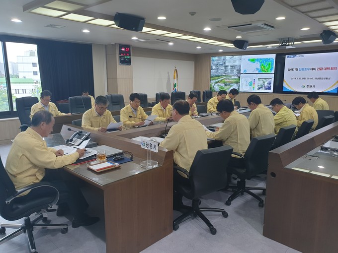 창원시는 26일과 27일 많은 강우에 이어 다가오는 29일과 30일 집중호우가 예보돼, 이현규 제2부시장 주재하에 전 실·국장, 소장이 참석하는 ‘장마 기간 집중호우 대비 긴급 대책회의’를 개최했다.