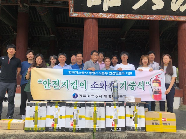 한국가스공사 통영기지본부는 25일 삼도수군통제영에 청정소화기 25대를 기부했다.
