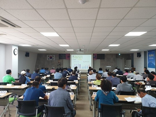 교육 진행자는 완주군 귀농귀촌 지원센터 강태희 센터장으로 귀농인의 입장에서 마을에 융화된 경험을 이야기하며 이해와 소통을 중심으로 공감대를 형성하는 교육을 진행하고 있다.