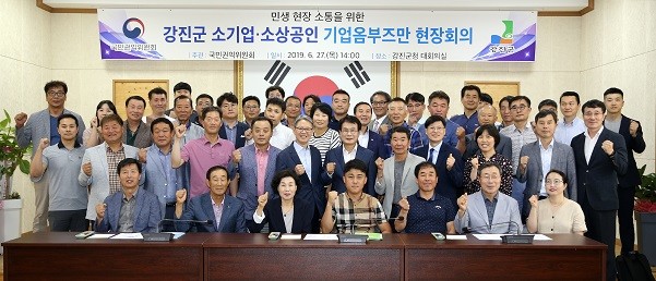 국민권익위원회가 주관하고 강진군이 주최한 이번 회의에서는 관내 중소기업·소상공인 30여명을 비롯해 중소벤처기업청, 고용노동부, 조달청, 관세청, 전남도청 등 13개 유관기관이 참석했다.