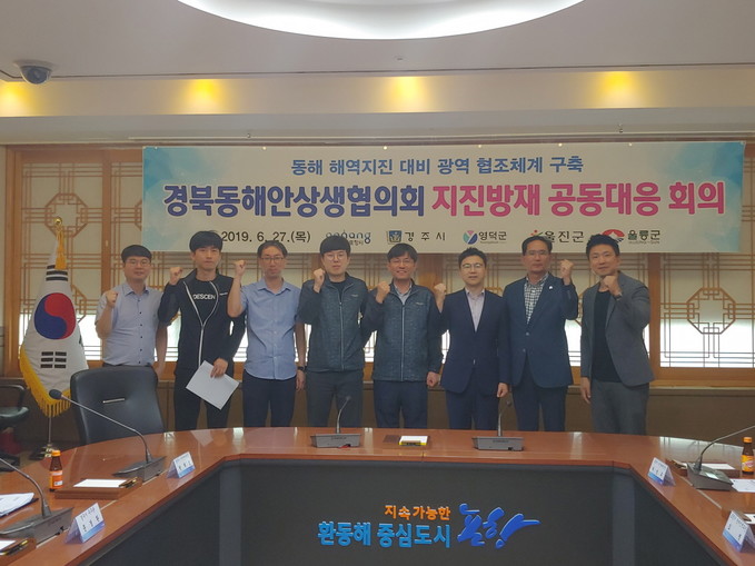 포항시와 경주시·영덕군·울진군·울릉군은 27일 포항시청 중회의실에서 허성두 포항시 지진대책국장과 도명 방재정책과장을 비롯해 5개 시군의 재난담당팀장과 담당자들이 참석한 가운데 지진방재 공동대응을 위한 회의를 가졌다.