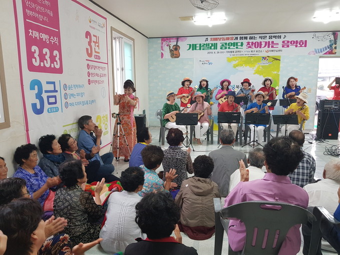 찾아가는 작은 음악회는 경상북도의 ‘찾아가는 문화활동 지원’에 포항시 북구보건소가 신청 선정돼 어르신 맞춤형 공연으로 치매보듬마을 어르신들에게 문화향유의 기회를 제공해 드렸다