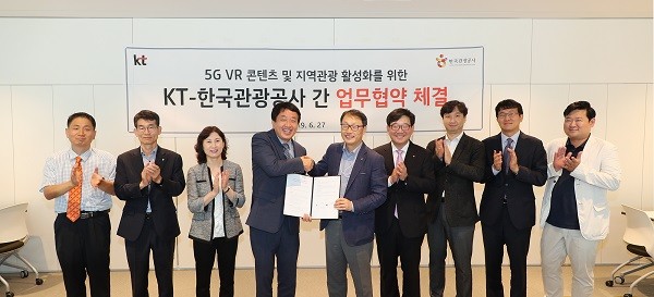 한국관광공사는 27일 KT와 5G 융복합 서비스 및 지역관광 활성화를 위한 업무협약을 체결했다고 28일 밝혔다.