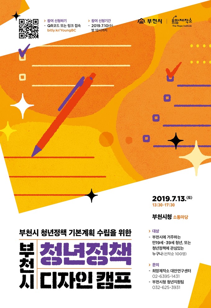 부천시는 오는 7월 13일 시청 소통마당에서 부천시 청년정책 디자인 캠프를 개최한다.