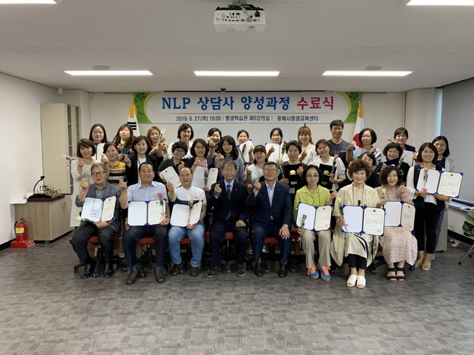 동해시는 27일 오후 4시 평생학습관에서 ‘NLP 상담사 양성과정’ 수료식을 개최했다고 전했다.