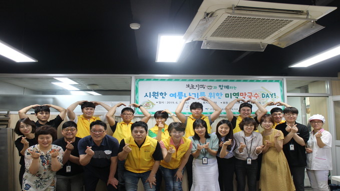 이번 행사는 ㈜비엔에스F&B에서 약100인분의 미역막국수를 준비해 복지관 내 식당에서 100여명의 저소득 소외이웃들에게 나눔을 진행했다.