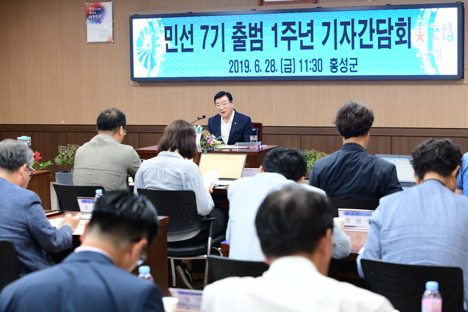 특히 민선 7기 출범과 동시에 홍주천년 기념사업을 성공적으로 마무리하고 지역 3대 현안인 시 승격, 내포혁신도시 지정, 청사이전 등의 기반을 확실히 다져 나가는 등 홍성을 새롭게 변화시켜 나가는데 시간 가는 줄 모르고 바쁘게 지낸 것 같다고 지난 1년간의 소회를 밝혔다.