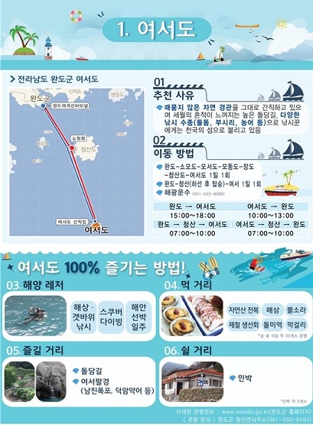 해양수산부는 여름을 맞아 가족, 친구, 연인과 함께 즐거운 휴가를 보낼 수 있는 ‘여름에 썸 타고 싶은 섬’ 9선을 소개했다.