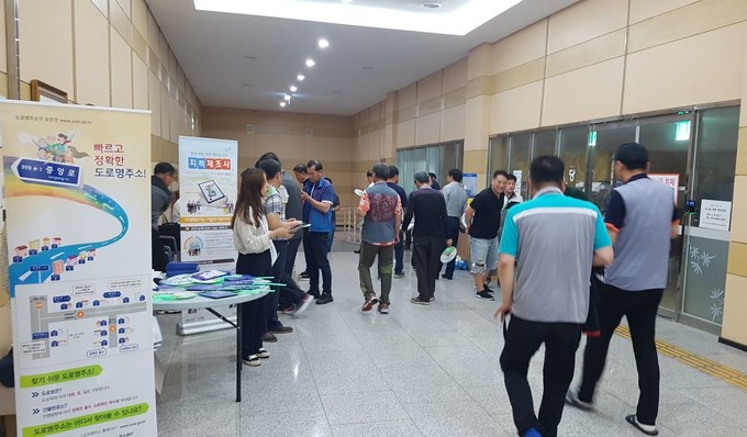 화순군이 지난 27일 하니움 문화스포츠센터에서 전남교통연수원이 개최한 운수종사자 교육 참석자를 대상으로 도로명주소와 지적재조사를 홍보했다.