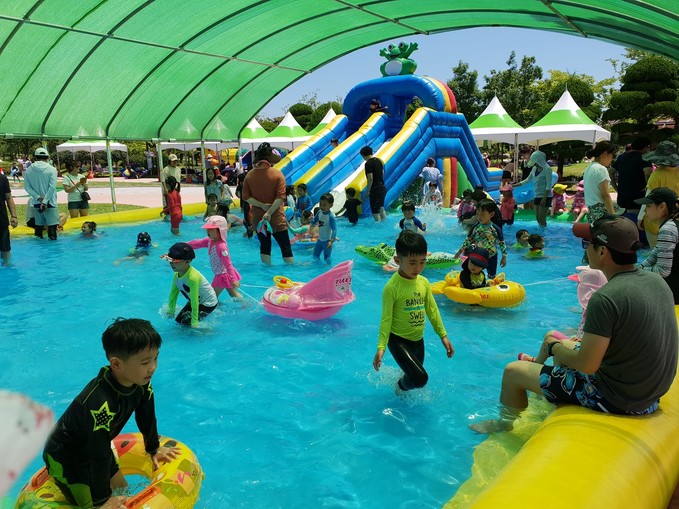 물놀이장 주변으로는 보호자를 위한 쉼터 및 그늘막, 에어 콤프레샤 등이 설치되어 있어 온가족이 함께 시원하고 쾌적하게 물놀이를 즐길 수 있도록 했다.