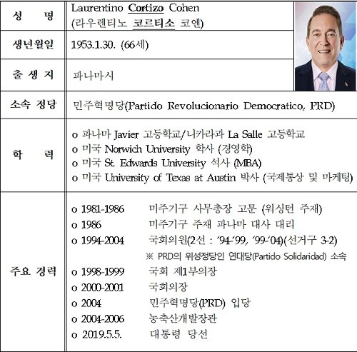 파나마 신임 대통령 인적사항