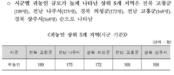 이런 측면에서 고창군은 멘토단 운영, 체류형 농업창업지원센터 등 특화된 귀농귀촌 정책을 펴면서 귀농자들의 초기 실패를 줄이는 데 집중한 점이 호평을 받고 있다.