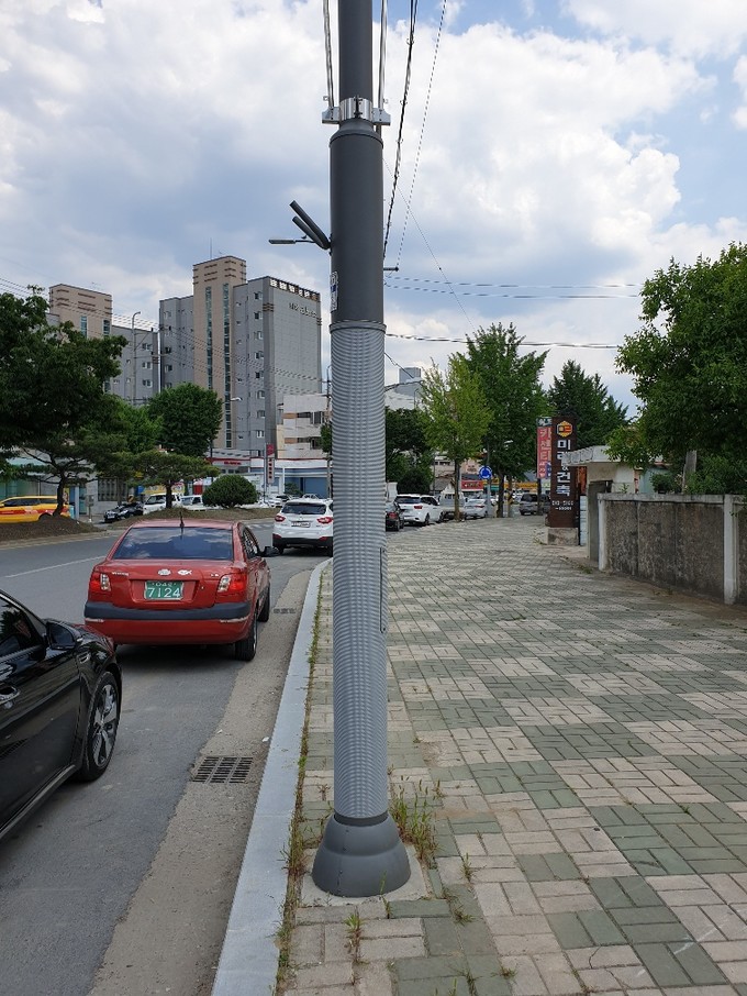 부착방지판은 신호등, 가로등, 이정표 등에 광고물이 부착되는 것을 예방하기 위한 시설로 전신주 등 시설물과 비슷한 회색으로 표면에 돌기가 있는 특수 패드로 제작됐다.