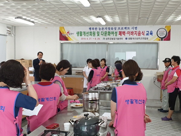 성주군은 농촌여성의 건전한 취미활동과 자기개발을 통한 전문 여성농업인 양성을 목적으로 지난 27일 다문화회원을 포함한 성주군 생활개선회원 30명이 참석한 가운데 폐백·이바지음식 교육을 실시했다.