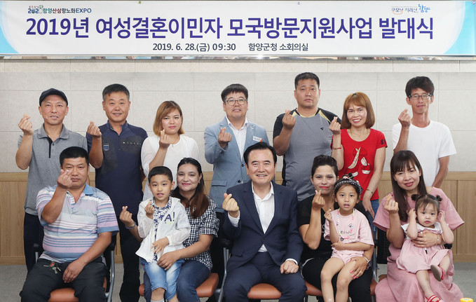 군에 따르면 28일 오전 군청 소회의실에서 서춘수 군수, 결혼이민자 5가족이 참석한 가운데 2019년 함양군 여성결혼이민자 가족 모국방문사업 발대식을 개최했다.