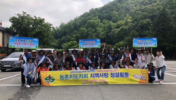김천시는 한국농촌지도자김천시연합회를 주축으로 28일, 연합회 임원 및 읍면동 회장 60여명이 ‘happy together 김천운동’ 실천프로젝트 두 번째 봉사활동으로 지역사랑 청결활동 및 양파 소비촉진 캠페인을 펼쳤다.