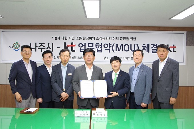 이날 협약식에는 강인규 나주시장, 오기섭 KT전남고객본부장을 비롯해 시청 담당 부서, KT 임직원 관계자 등 10여명이 참석했다.