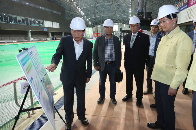 고양시는 지난 6월 27일 민선7기 취임 1주년을 기해 고양어울림누리 빙상장과 고양체육관 수영장의 보수 현장을 방문했다.