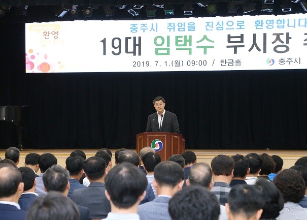 임택수 충주시 부시장은 1일 시청 탄금홀에서 열린 취임 인사를 통해 “천혜의 관광자원과 중원문화의 숨결이 살아 숨 쉬는 충주에서 부시장으로 취임하게 된 것을 기쁘게 생각한다”며 “조길형 충주시장님의 시정철학을 바탕으로 시민과의 소통을 강화하고 동료분들과 함께 지혜와 힘을 모아 충주 번영과 시민 행복을 위해 모든 역량을 쏟을 것”이라고 포부를 밝혔다.