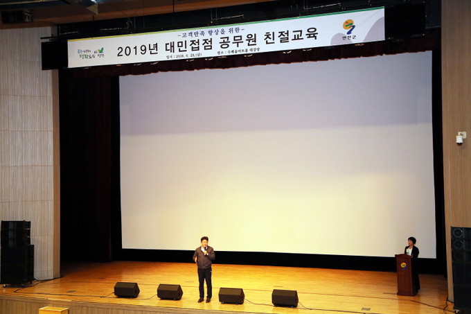 연천군은 지난 달 28일 수레울아트홀 대강당에서 연천군 공무원 전 직원을 대상으로 2019년도 민원친절 교육을 실시했다고 밝혔다.