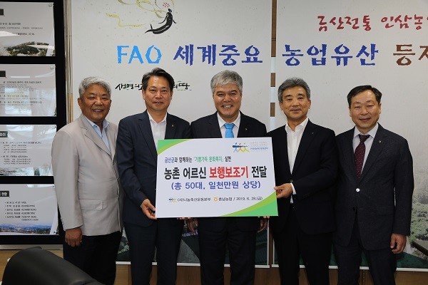 나눔축산운동본부, 충남농협 금산군에 보행보조기 전달